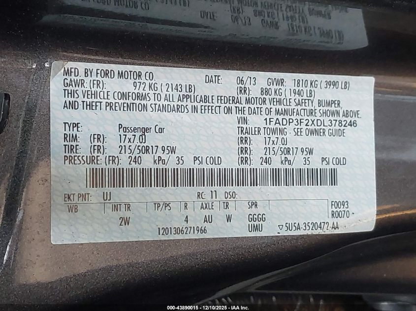Цвет СерыйЦилиндры 4Привод Передний приводVIN 1FADP3F2XDL378246Состояние Заводится и едет (проверено)Повреждения Низ AutoRIA