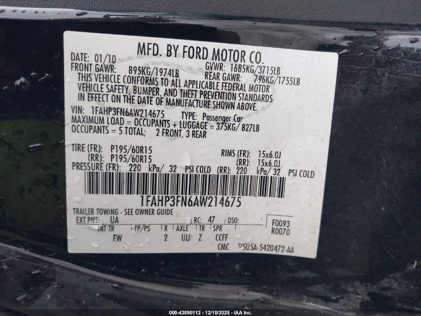 Цвет ЧерныйЦилиндры 4Привод Передний приводVIN 1FAHP3FN6AW214675Состояние СтационарноПовреждения По бокам AutoRIA