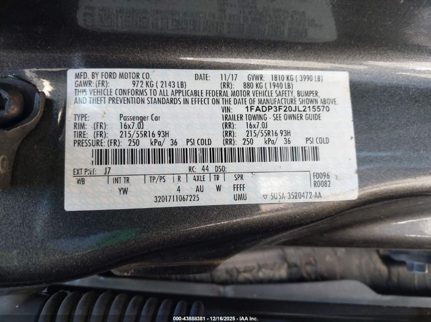 2018 FORD FOCUS 2018 року Бензин, 2.0, Передний привод, vin - 1FADP3F20JL215570 из США