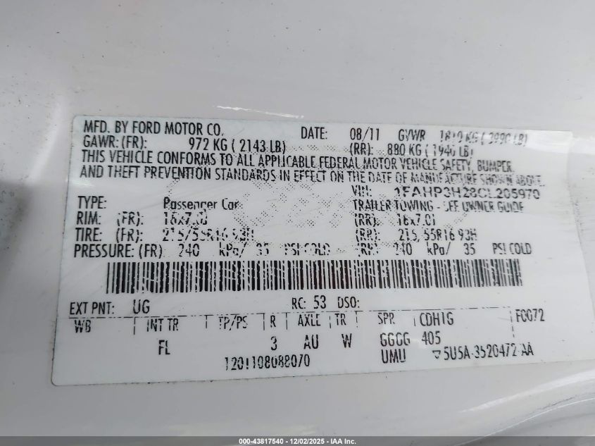 Цвет БежевыйЦилиндры 4Привод Передний приводVIN 1FAHP3H28CL205970Состояние СтационарноПовреждения Передняя или задняя AutoRIA