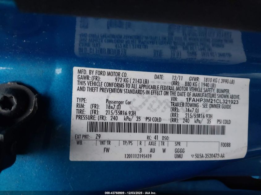 2012 FORD FOCUS 2012 року Бензин, 2.0, Передний привод, vin - 1FAHP3M21CL321923 из США