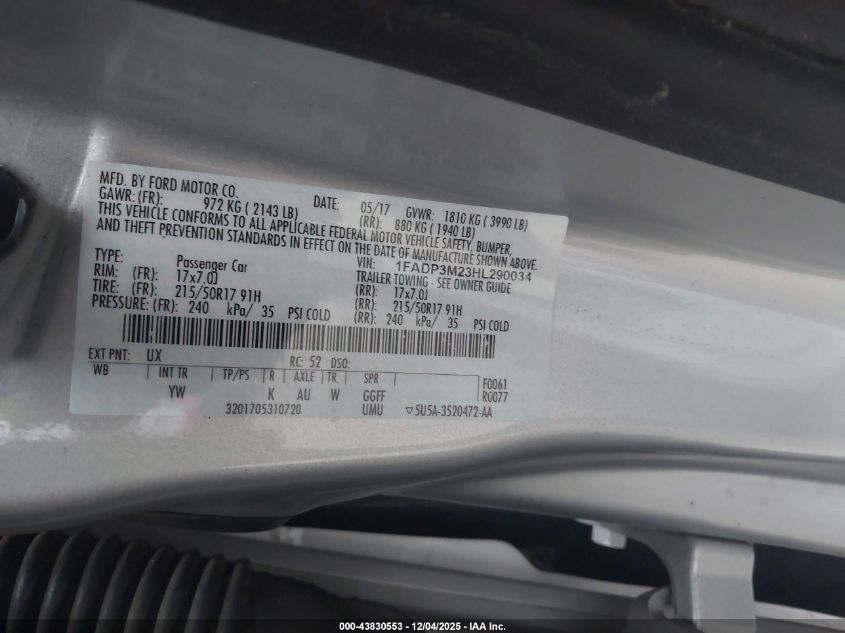 2017 FORD FOCUS 2017 року Бензин, 2.0, Передний привод, vin - 1FADP3M23HL290034 из США