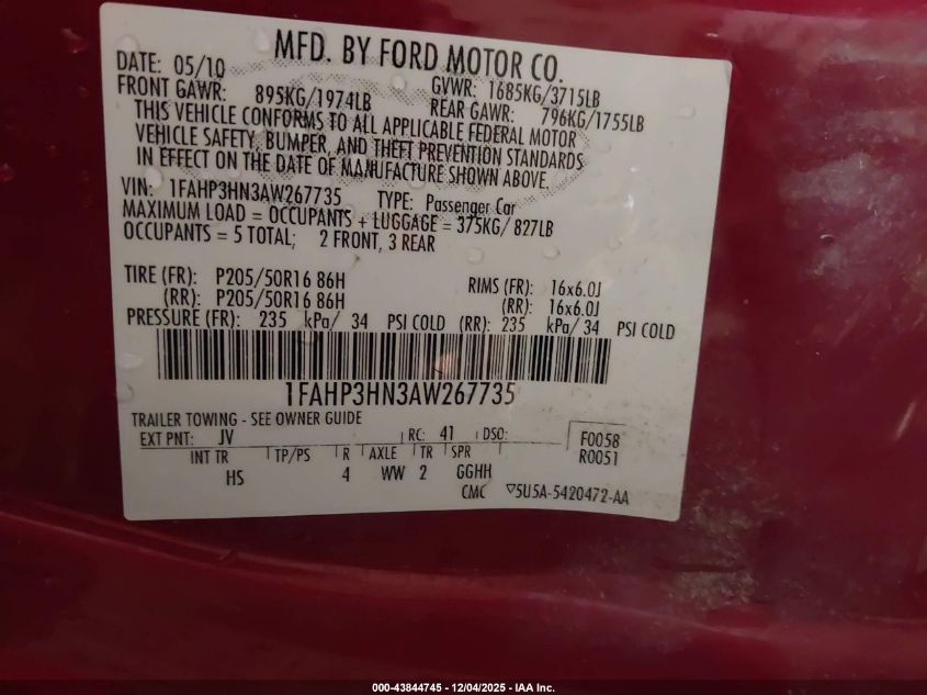 Цвет КрасныйЦилиндры 4Привод Передний приводVIN 1FAHP3HN3AW267735Состояние СтационарноПовреждения Передняя или задняя AutoRIA