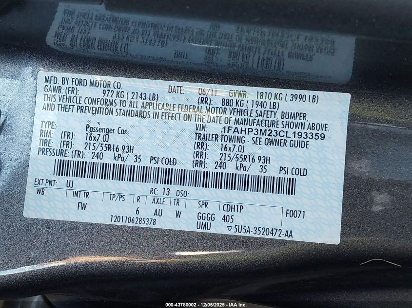 2012 FORD FOCUS 2012 року Бензин, 2.0, Передний привод, vin - 1FAHP3M23CL193359 из США