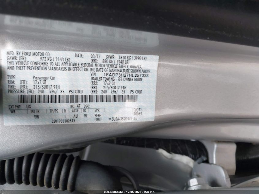 2017 FORD FOCUS 2017 року Бензин, 2.0, Передний привод, vin - 1FADP3H27HL257323 из США