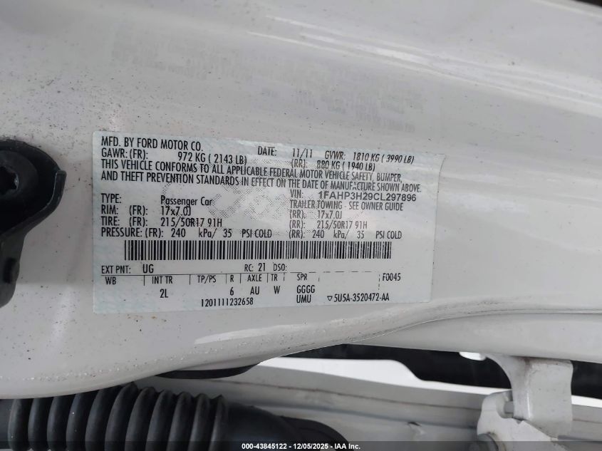 2012 FORD FOCUS 2012 року Бензин, 2.0, Передний привод, vin - 1FAHP3H29CL297896 из США