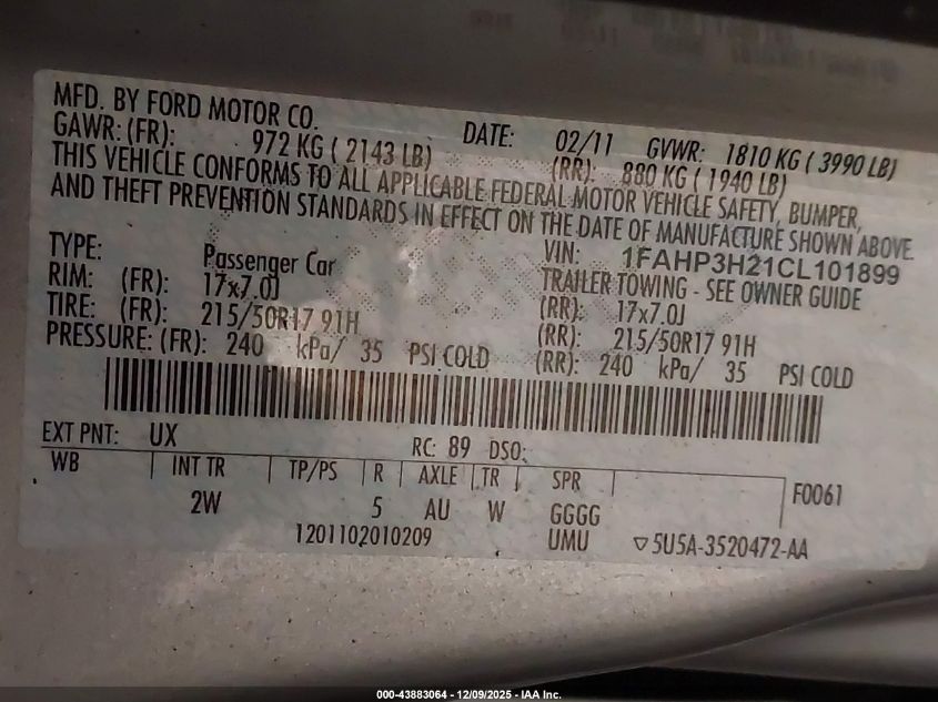 Цвет СеребряныйЦилиндры 4Привод Передний приводVIN 1FAHP3H21CL101899Состояние Заводится и едет (проверено)Повреждения Обычный износ AutoRIA