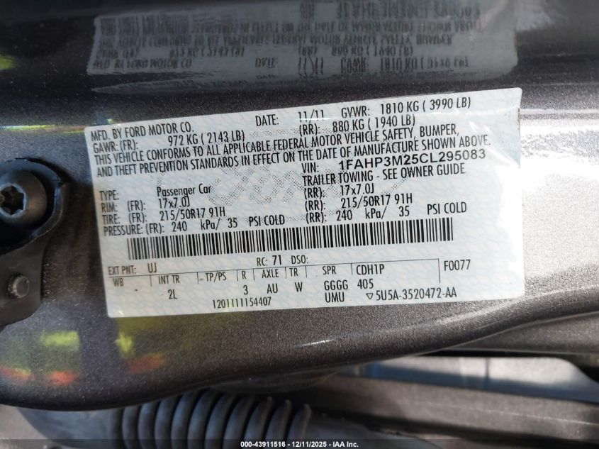 2012 FORD FOCUS 2012 року Бензин, 2.0, Передний привод, vin - 1FAHP3M25CL295083 из США