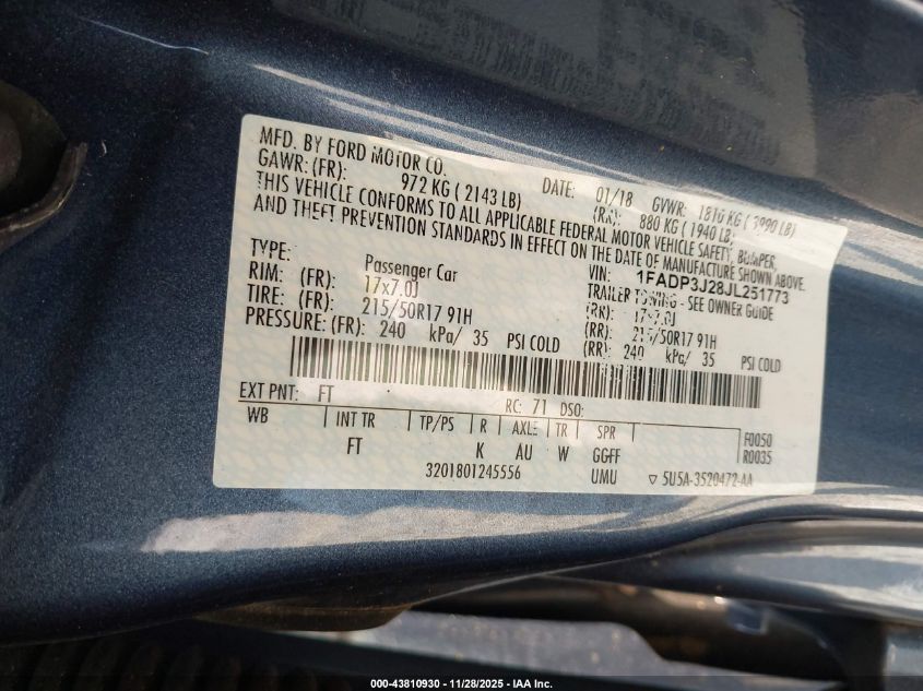 2018 FORD FOCUS 2018 року Бензин, 2.0, Передний привод, vin - 1FADP3J28JL251773 из США