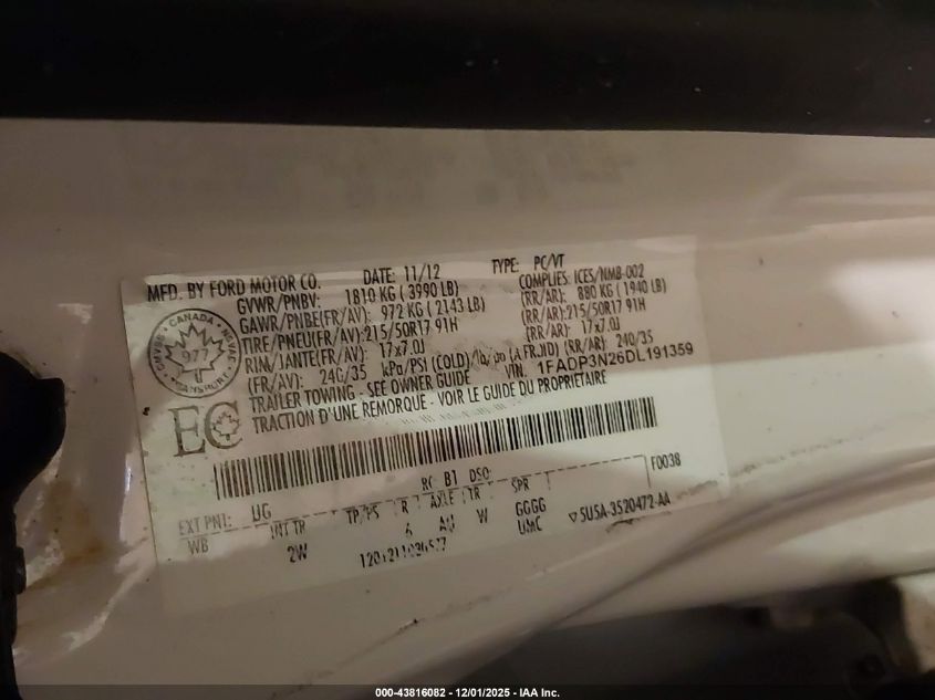 Цвет БелыйЦилиндры 4Привод Передний приводVIN 1FADP3N26DL191359Состояние СтационарноПовреждения Передняя или задняя AutoRIA