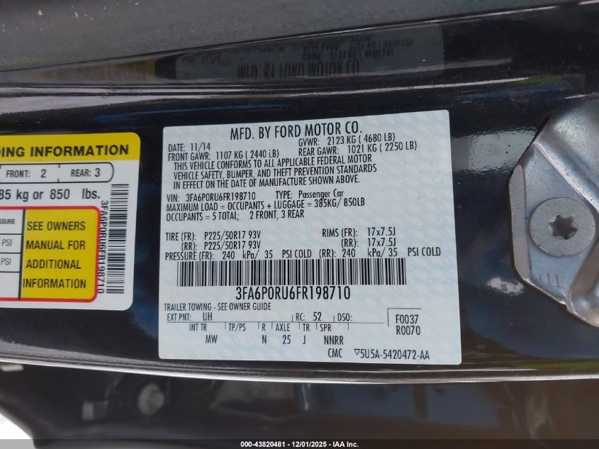 2015 FORD FUSION HYBRID 2015 року Гибрид, 2.0, Передний привод, vin - 3FA6P0RU6FR198710 из США