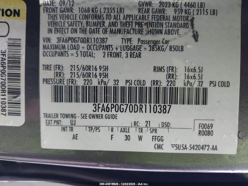 Цвет СерыйЦилиндры 4Привод Передний приводVIN 3FA6P0G70DR110387Состояние Заводится и едет (проверено)Повреждения Передняя или задняя AutoRIA
