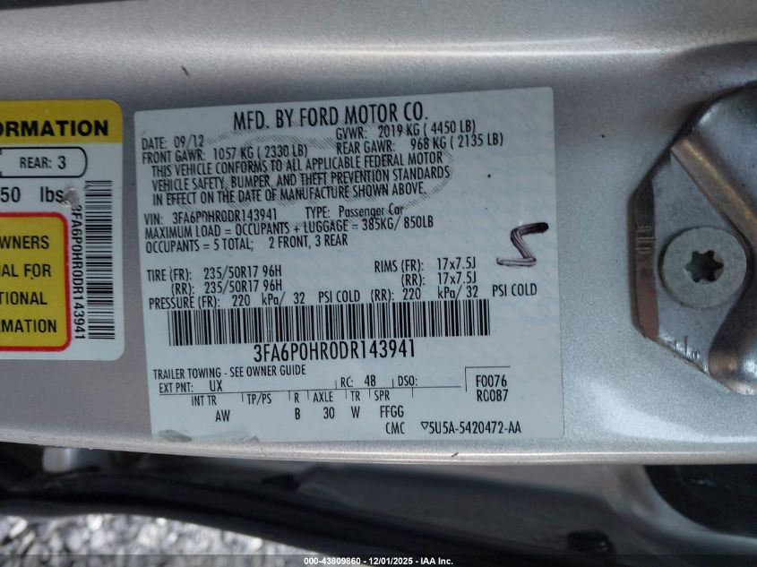2013 FORD FUSION 2013 року Бензин, 1.6, Передний привод, vin - 3FA6P0HR0DR143941 из США