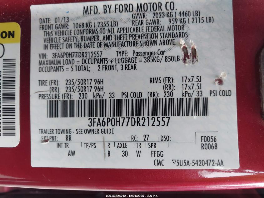 2013 FORD FUSION 2013 року Бензин, 2.5, Передний привод, vin - 3FA6P0H77DR212557 из США