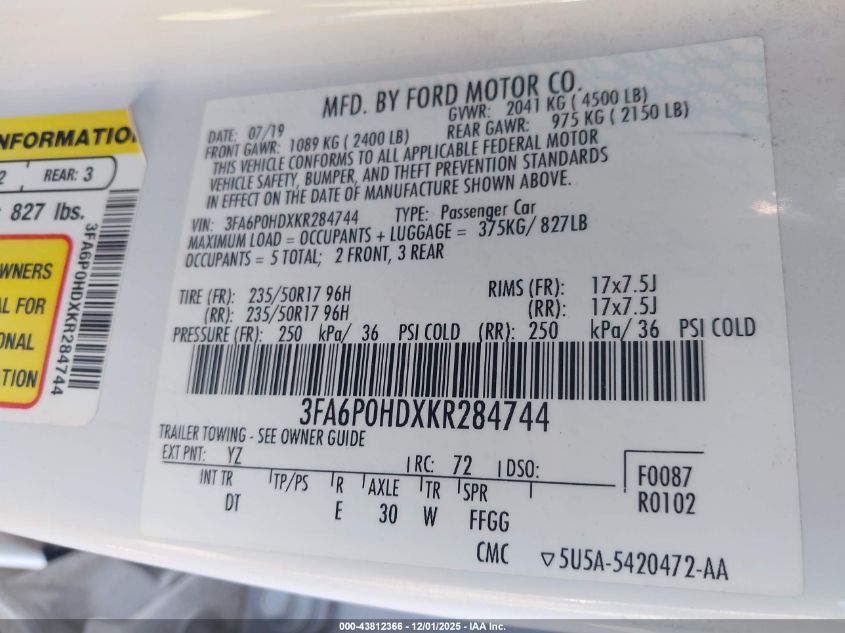 2019 FORD FUSION 2019 року Бензин, 1.5, Передний привод, vin - 3FA6P0HDXKR284744 из США