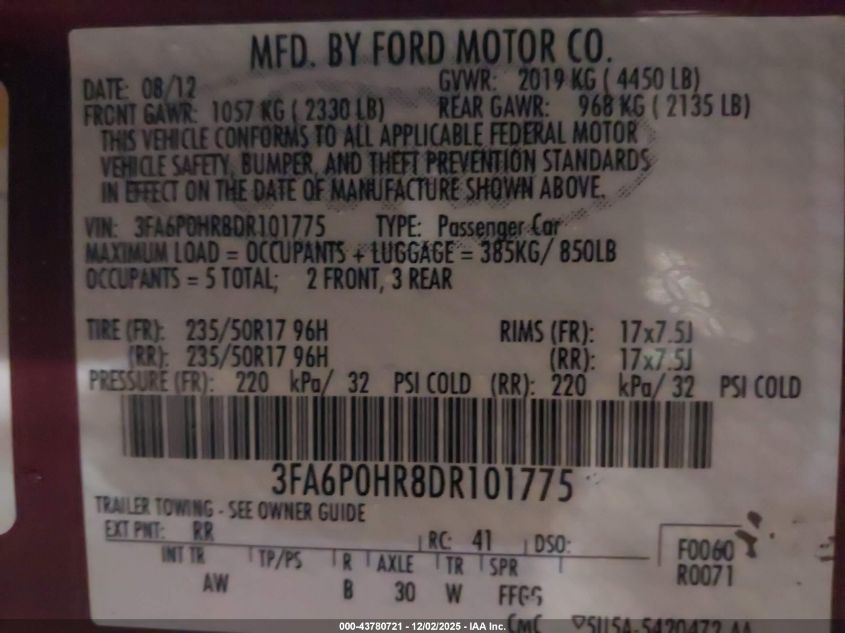 Цвет БургундияЦилиндры 4Привод Передний приводVIN 3FA6P0HR8DR101775Состояние Заводится и едет (проверено)Повреждения Передняя или задняя AutoRIA