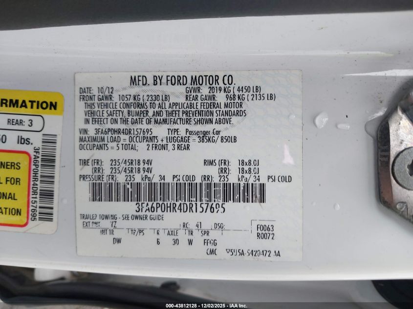 Цвет БелыйЦилиндры 4Привод Передний приводVIN 3FA6P0HR4DR157695Состояние Заводится и едет (проверено)Повреждения Передняя или задняя AutoRIA