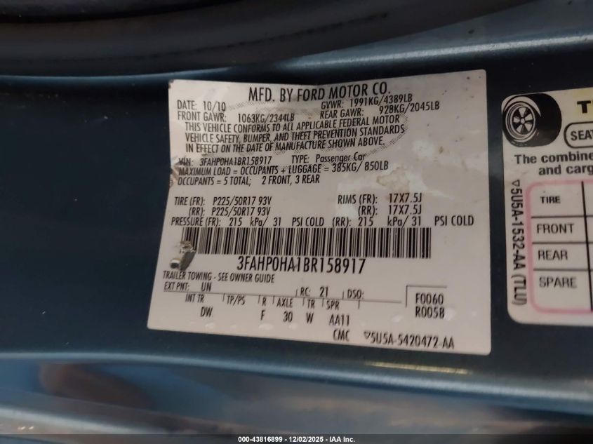 Цвет СерыйЦилиндры 4Привод Передний приводVIN 3FAHP0HA1BR158917Состояние Заводится и едет (проверено)Повреждения Передняя или задняя AutoRIA