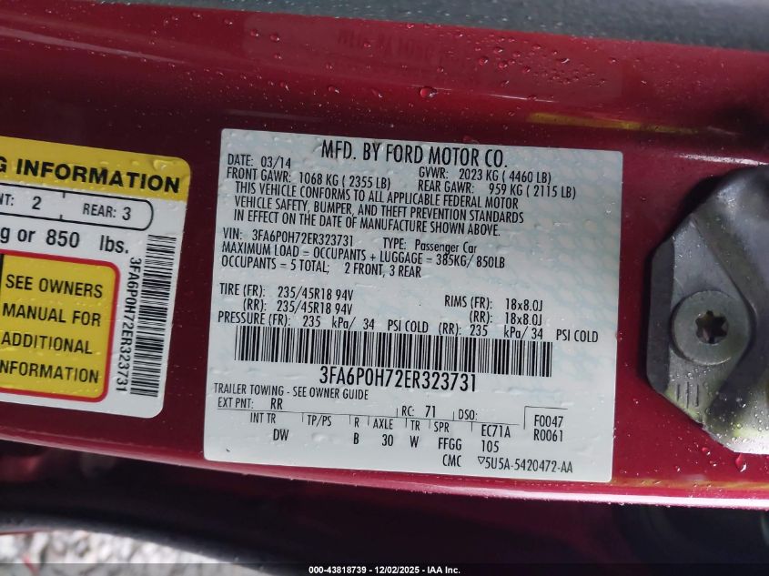 2014 FORD FUSION 2014 року Бензин, 2.5, Передний привод, vin - 3FA6P0H72ER323731 из США