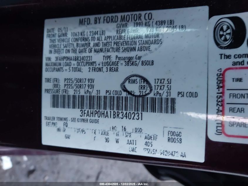 2011 FORD FUSION 2011 року Бензин, 2.5, Передний привод, vin - 3FAHP0HA1BR340231 из США