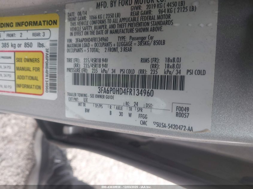 2015 FORD FUSION 2015 року Бензин, 1.5, Передний привод, vin - 3FA6P0HD4FR134960 из США