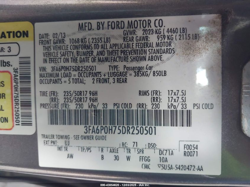 2013 FORD FUSION 2013 року Бензин, 2.5, Передний привод, vin - 3FA6P0H75DR250501 из США