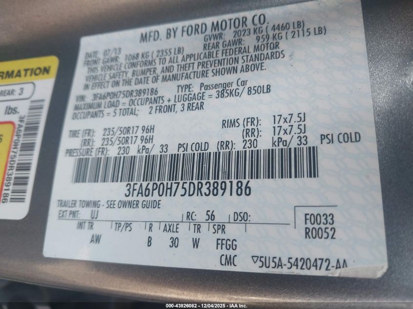 2013 FORD FUSION 2013 року Бензин, 2.5, Передний привод, vin - 3FA6P0H75DR389186 из США