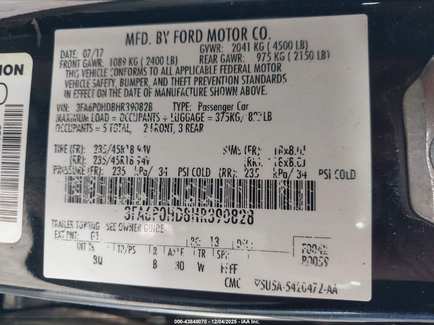 2017 FORD FUSION 2017 року Бензин, 1.5, Передний привод, vin - 3FA6P0HD8HR390828 из США