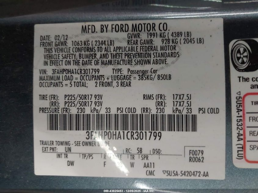 2012 FORD FUSION 2012 року Бензин, 2.5, Передний привод, vin - 3FAHP0HA1CR301799 из США