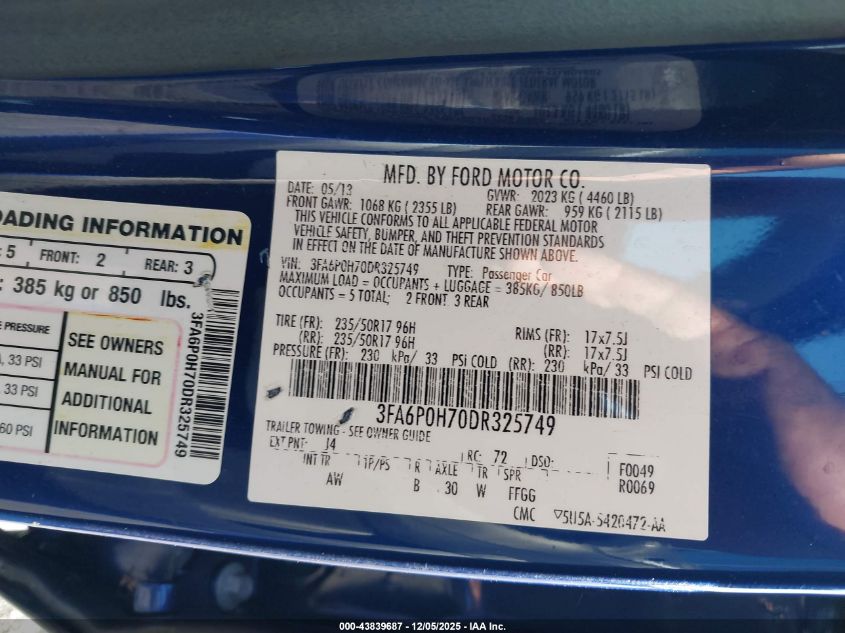 Цвет СинийЦилиндры 4Привод Передний приводVIN 3FA6P0H70DR325749Состояние Заводится и едет (проверено)Повреждения Задняя AutoRIA