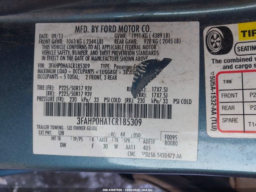 2012 FORD FUSION SE