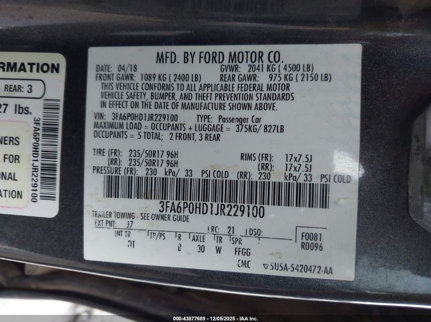 2018 FORD FUSION SE