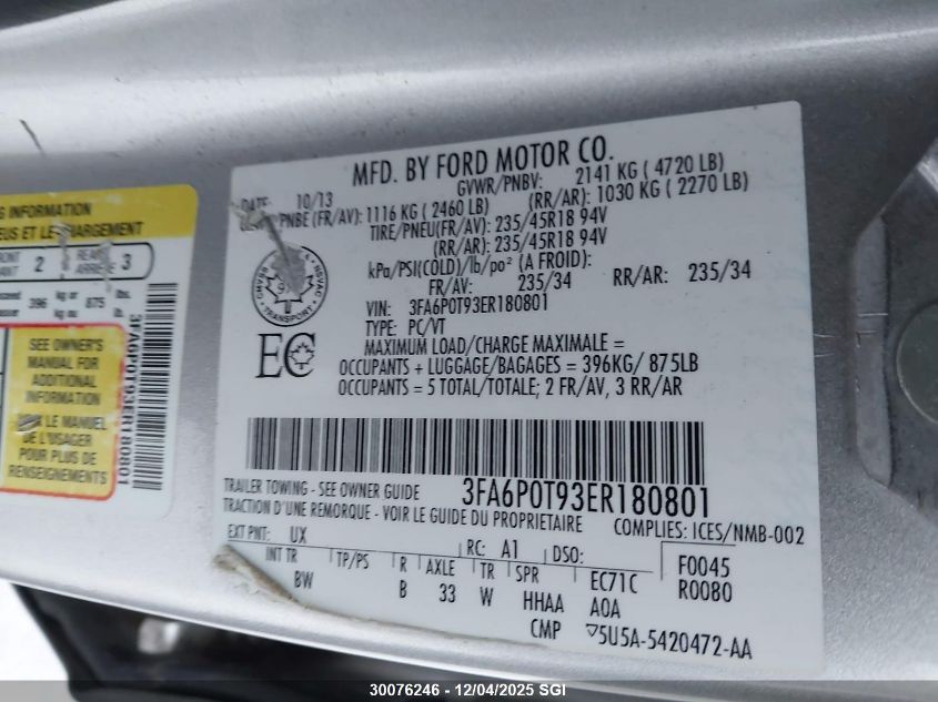 2014 FORD FUSION 2014 року Бензин, , Полный привод, vin - 3FA6P0T93ER180801 из США
