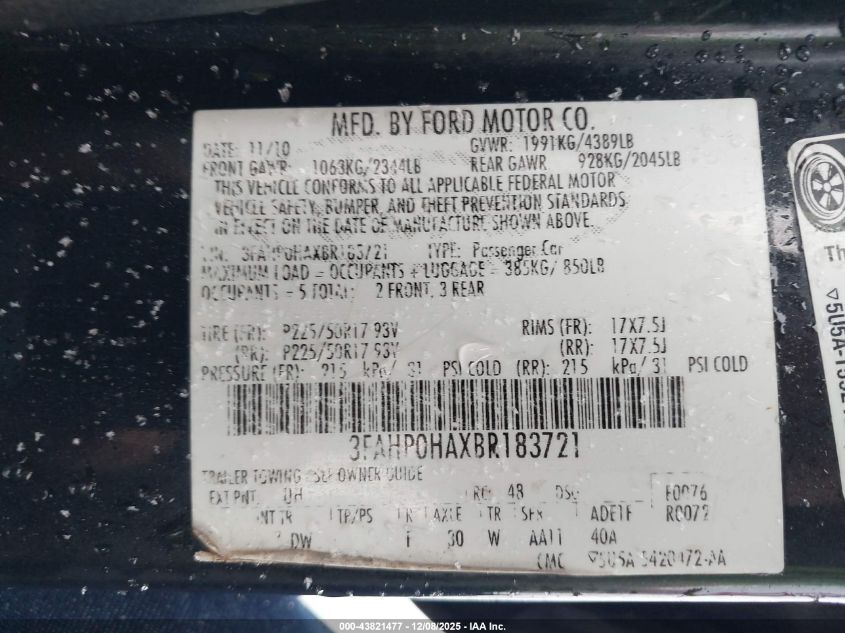 2011 FORD FUSION S