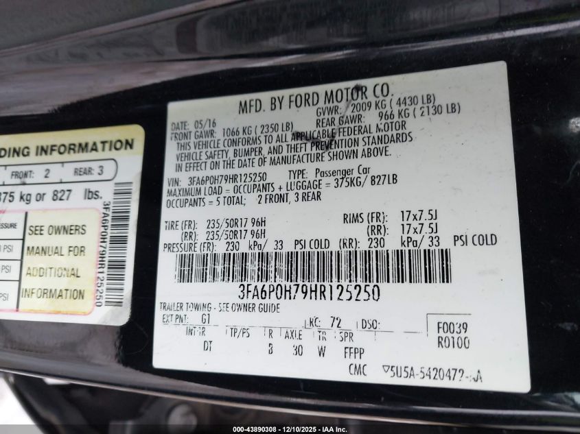 2017 FORD FUSION 2017 року Бензин, 2.5, Передний привод, vin - 3FA6P0H79HR125250 из США