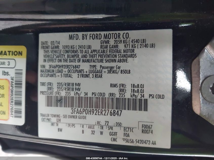 2014 FORD FUSION 2014 року Бензин, 2.0, Передний привод, vin - 3FA6P0H92ER276847 из США