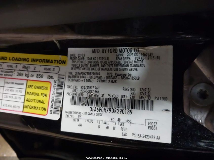 2013 FORD FUSION 2013 року Бензин, 2.5, Передний привод, vin - 3FA6P0H79DR290189 из США