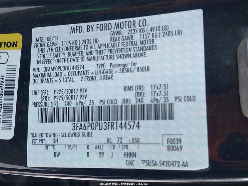 2015 FORD FUSION 2015 року Гибрид, 2.0, Передний привод, vin - 3FA6P0PU3FR144574 из США