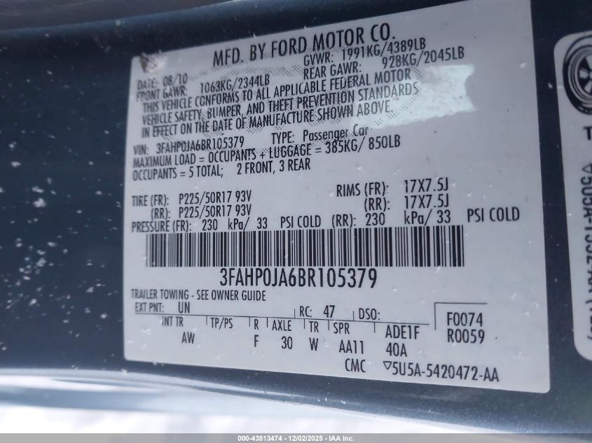 2011 FORD FUSION S