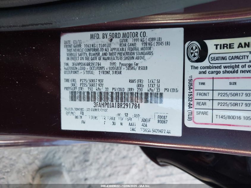 2011 FORD FUSION SE
