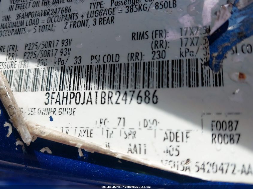 2011 FORD FUSION S