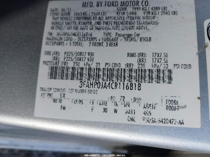 2012 FORD FUSION SE
