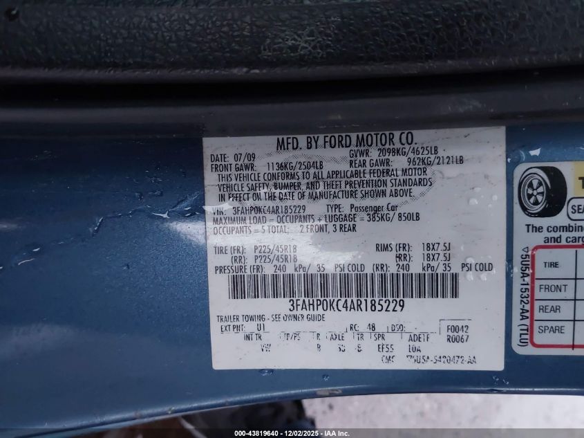 Цвет СинийЦилиндры 6Привод Передний приводVIN 3FAHP0KC4AR185229Состояние СтационарноПовреждения Био/ХимическиеДата аукциона 2025-12-10 AutoRIA