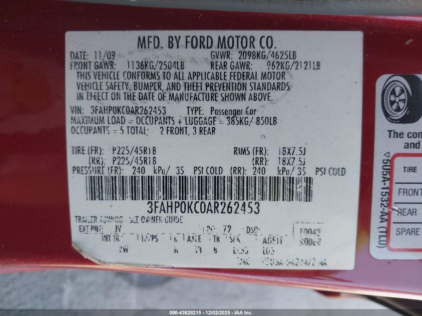 2010 FORD FUSION 2010 року Бензин, 3.5, Передний привод, vin - 3FAHP0KC0AR262453 из США