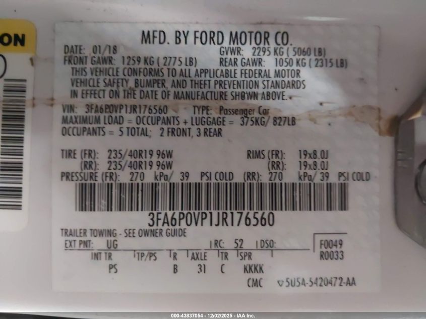 2018 FORD FUSION 2018 року Бензин, 2.7, Полный привод, vin - 3FA6P0VP1JR176560 из США