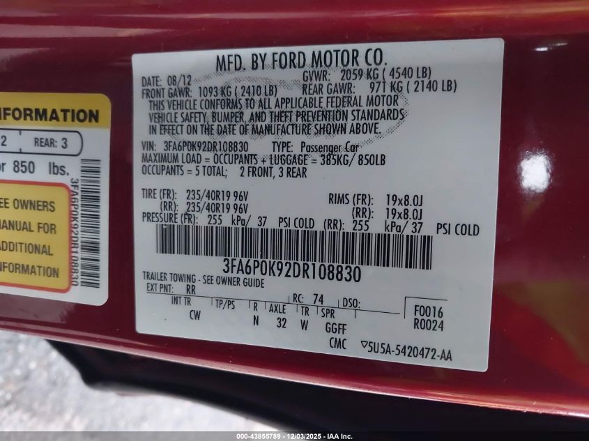Цвет КрасныйЦилиндры 4Привод Передний приводVIN 3FA6P0K92DR108830Состояние СтационарноПовреждения Передняя или задняя AutoRIA