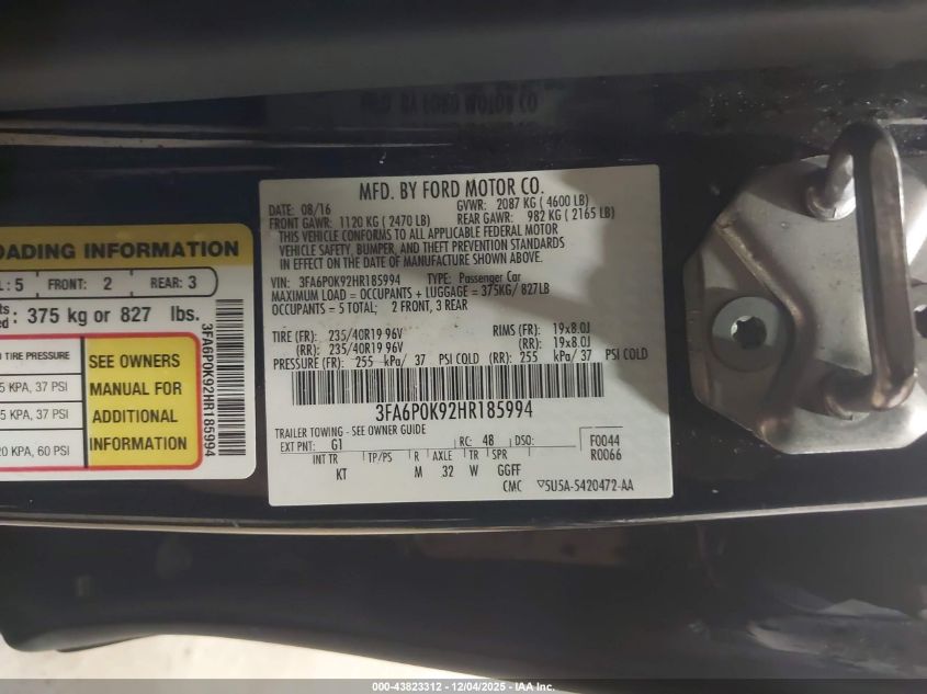 2017 FORD FUSION 2017 року Бензин, 2.0, Передний привод, vin - 3FA6P0K92HR185994 из США