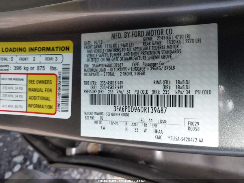 2013 FORD FUSION 2013 року Бензин, 2.0, Полный привод, vin - 3FA6P0D96DR139687 из США