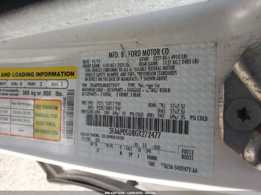 Цвет БелыйЦилиндры 4Привод Передний приводVIN 3FA6P0SU8GR272477Состояние СтационарноПовреждения Передняя левая AutoRIA