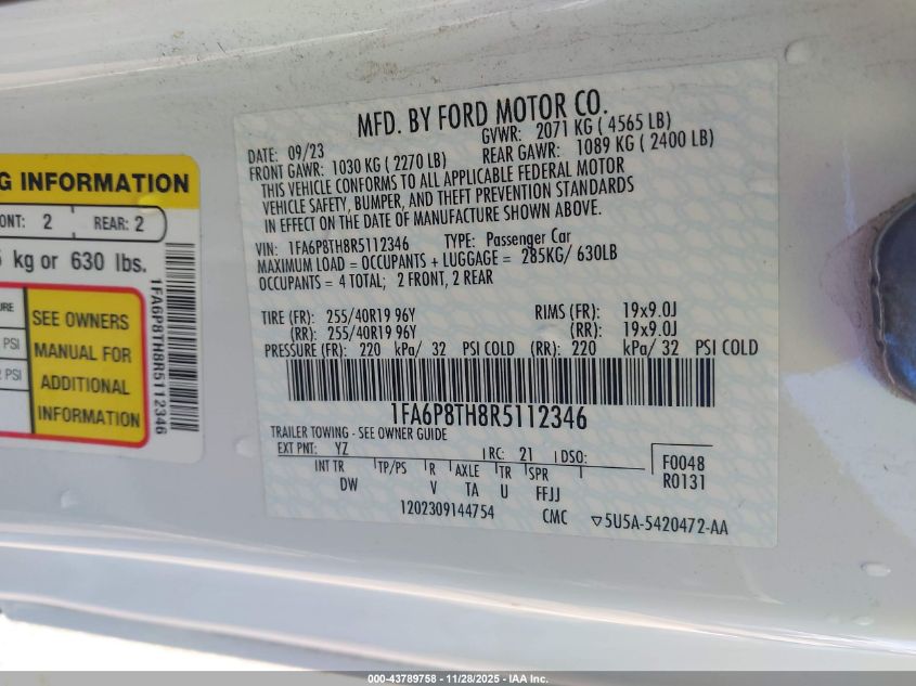 2024 FORD MUSTANG 2024 року Бензин, 2.3, Задний привод, vin - 1FA6P8TH8R5112346 из США